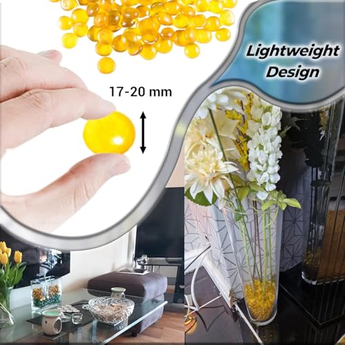 - المحتوى والكمية: 100 قطعة [بوزن 500 جرام] من حصى/أحجار/خرز/أحجار كريمة/قطع زينة من الحرف اليدوية من ارسوك مصنوعة من الزجاج بلون اصفر ذات تصميم مستدير لامع وعالي الجودة ومقاوم للماء تأسر الجميع في جميع الأوقات. حصى من الزجاج الشفاف من ارسوك مصنوعة من مادة الزجاج النقي وعالي الجودة.