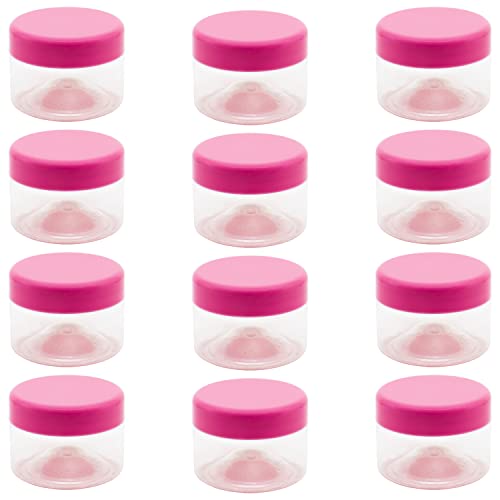 Artistic - برطمان بلاستيك بيضاء شفافة سعة 100 مل من ارت، 12 قطعة، قطر 6.3 سم، لون بينك وغطاء طبي برطمانات تخزين فارغة صحية فائقة الجودة قابلة لاعادة الاستخدام