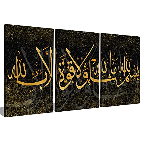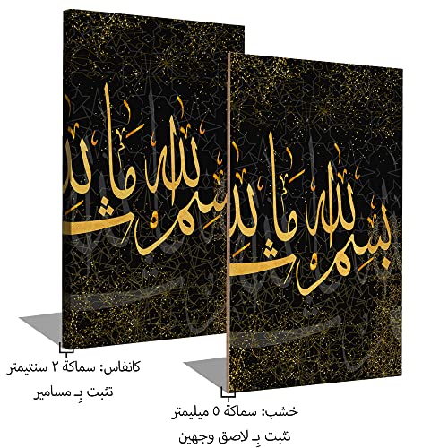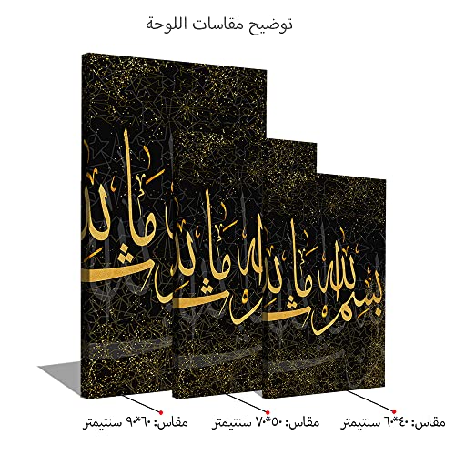 Generic - حبر آرت 3 لوحات من خشب الكانفاس للديكور بسم الله ما شاء لا قوة الا بالله 40x60x2 الوان متعددة