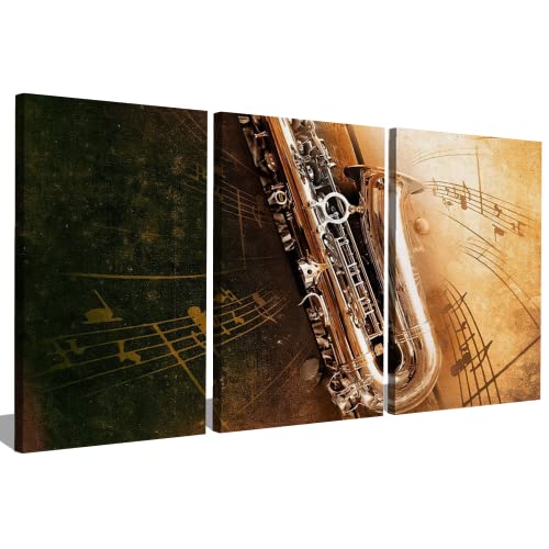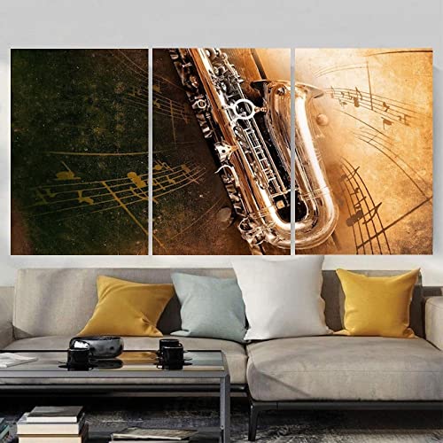 Generic - حبر آرت 3 لوحات من خشب الكانفاس للديكور ساكسفون 60x90x2 الوان متعددة