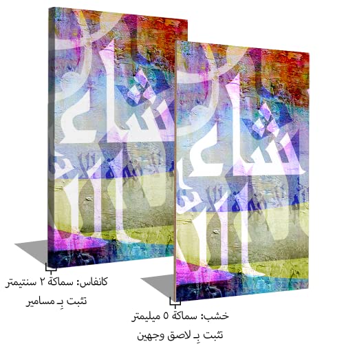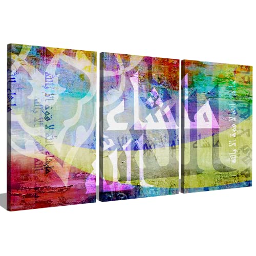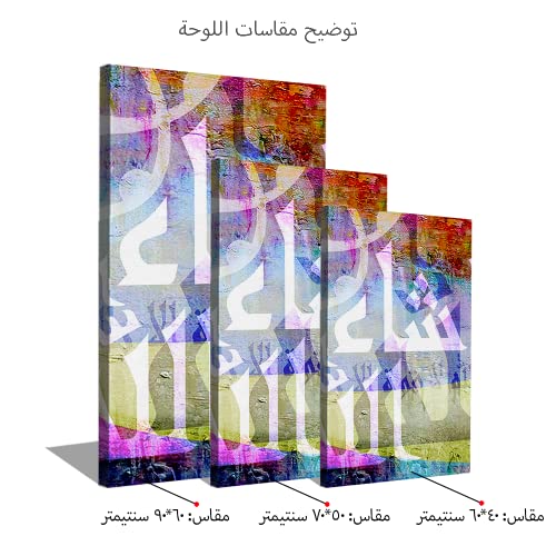 Generic - حبر آرت 3 لوحات من خشب الكانفاس للديكور فن اسلامي ما شاء الله 50x70x2 الوان متعددة