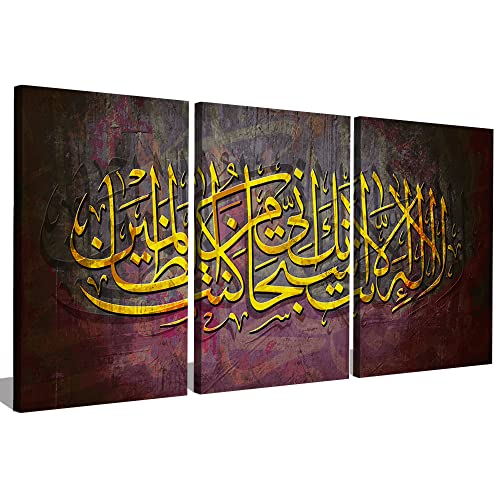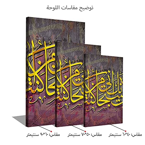 Generic - حبر آرت 3 لوحات من خشب الكانفاس للديكور لا اله الا الله اني كنت من الظالمين 40x60x2 الوان متعددة S3TC4060-0085