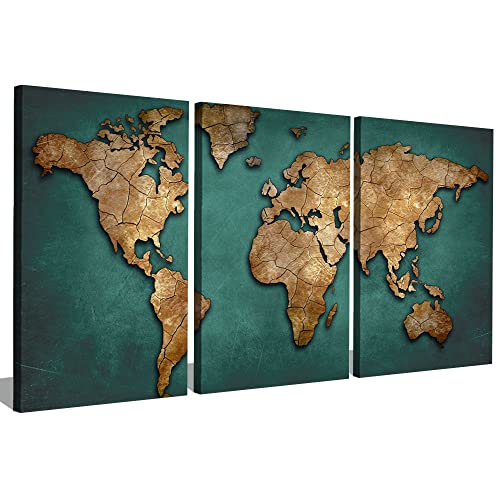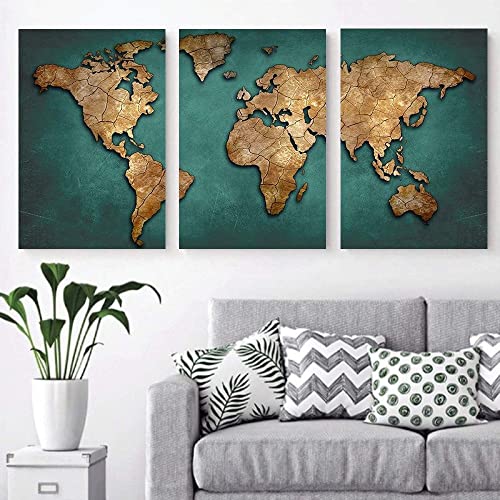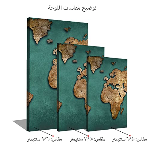 Generic - حبر آرت 3 لوحات من خشب الكانفاس للديكور خريطة العالم 40x60x2 الوان متعددة S3TC4060-0045