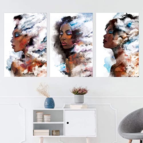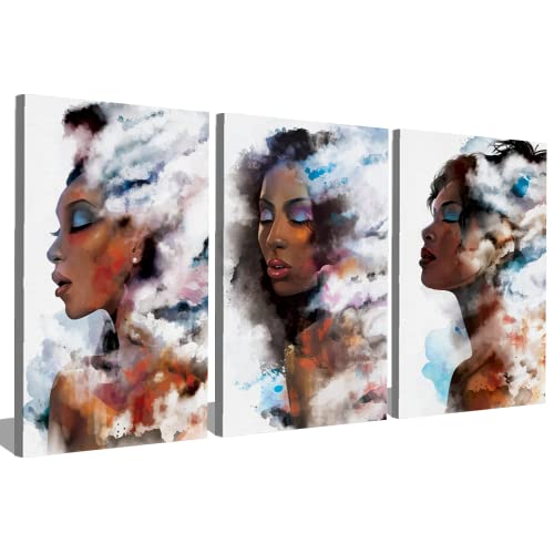 Generic - حبر آرت 3 لوحات من خشب الكانفاس مودرن للديكور فتاة 50x70x2 الوان متعددة S3TC5070-0013