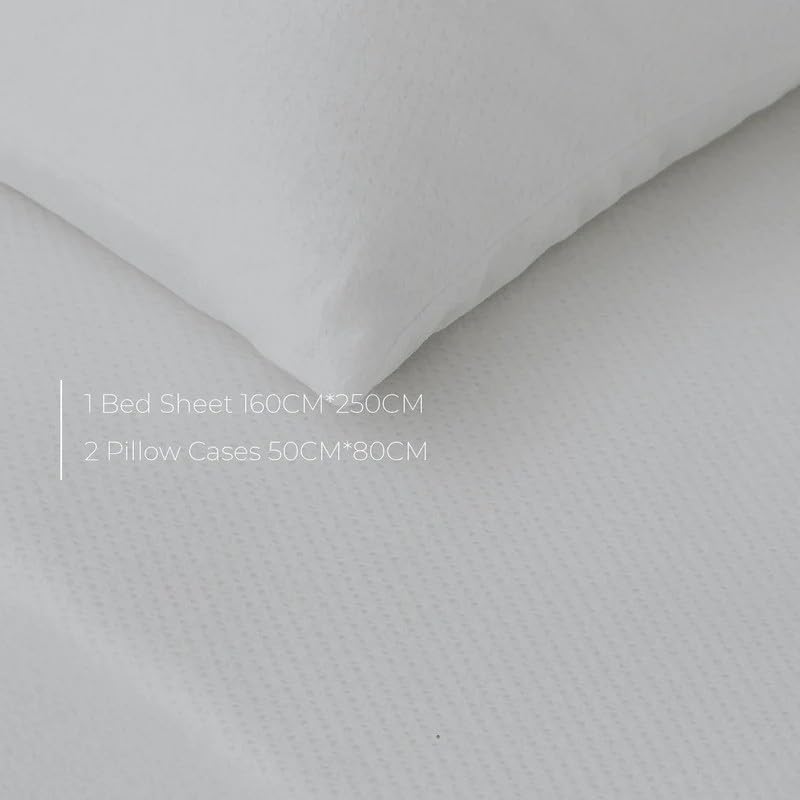 - مجموعة مريحة من 3 قطع: تتضمن ملاية سرير كبيرة للاستعمال مرة واحدة (1.6 × 2.5 متر) 2 كيس مخدة (50 × 80 سم) - ما يوفر تغطية كاملة للأسرة الفردية وزيادة النظافة أينما كنت.