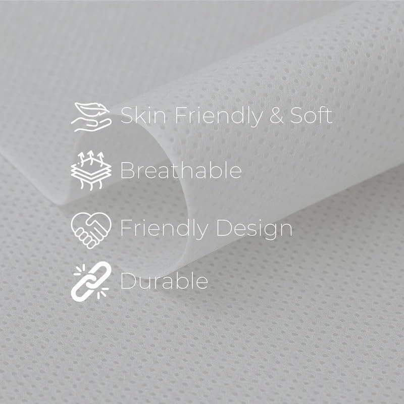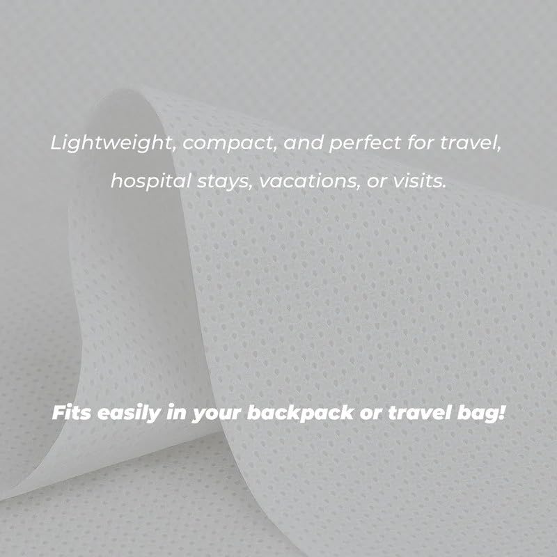 - قماش غير منسوج لطيف على البشرة: مصنوعة من مادة ناعمة وجيدة التهوية وغير منسوجة ولطيفة على جميع أنواع البشرة - مما يوفر راحة صحية وخالية من التهيج أثناء السفر أو زيارات المستشفى أو الإقامة المؤقتة.