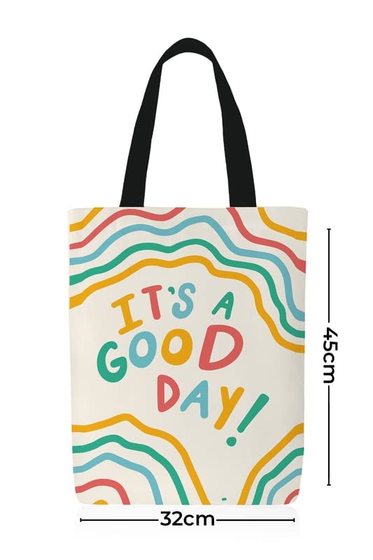 ART MOOD HOME - شنطة يد كبيرة توت مطبوع عليها Good day من القماش من ارت مود هوم، متعددة الالوان، 32 × 45 سم, متعدد