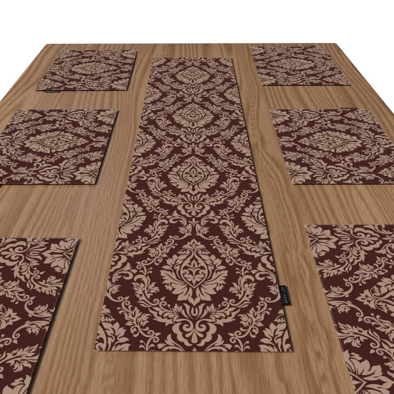 - طقم مفارش للأطباق ومفرش طويل بتصميم جذاب.