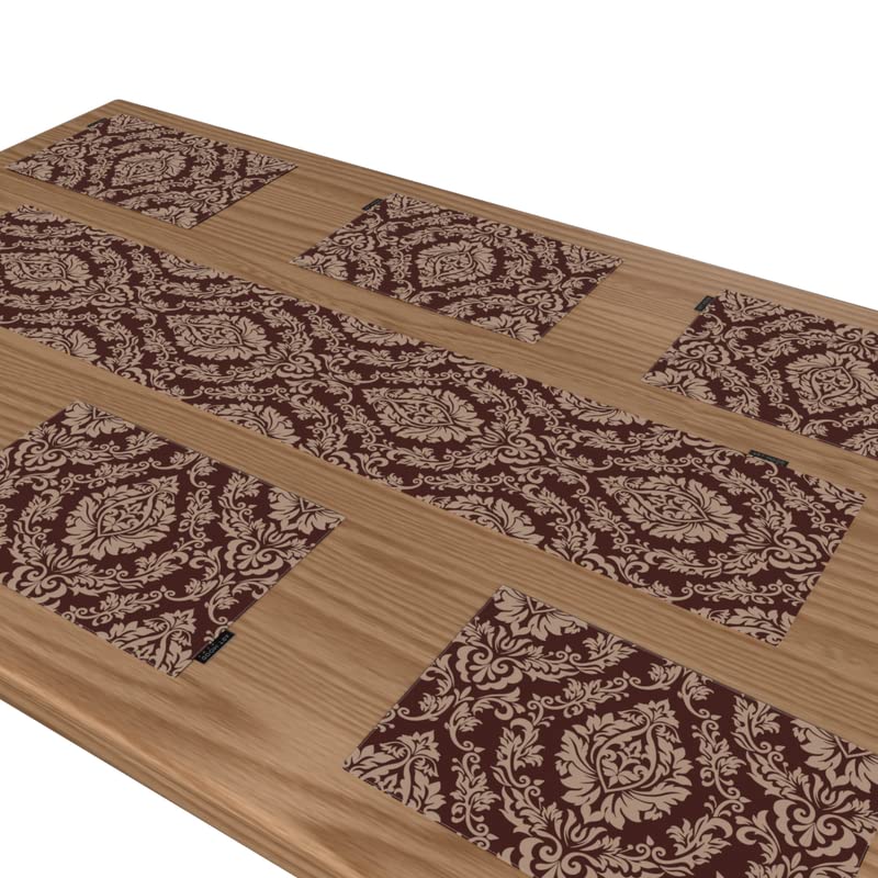 - 6 قطع من مفارش الأطباق بأبعاد 45 طول × 30 سم عرض ومفرش 35 سم طول × 1.40 م عرض
