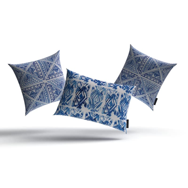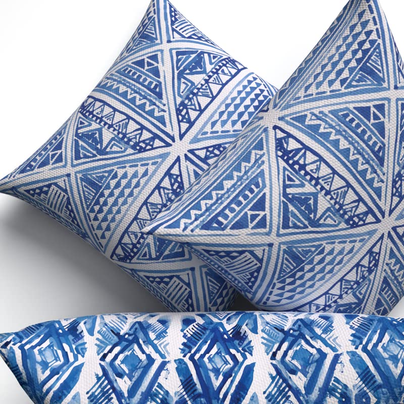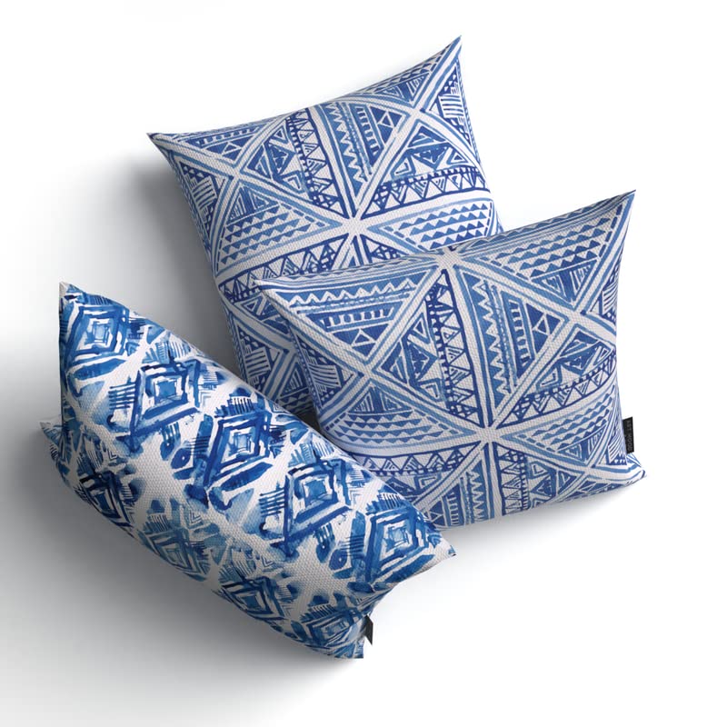 ART MOOD HOME - طقم أكياس مخدة من آرت مود هوم من القماش مطبوع بشكل مربعات، لون أزرق وأبيض، مقاس 40 سم عرض × 40 سم طول
