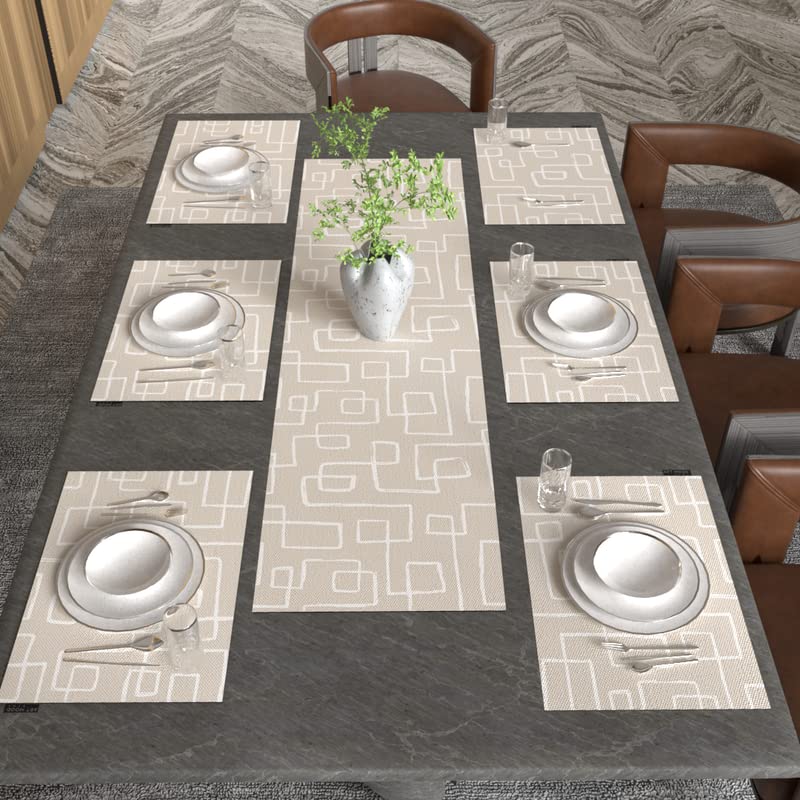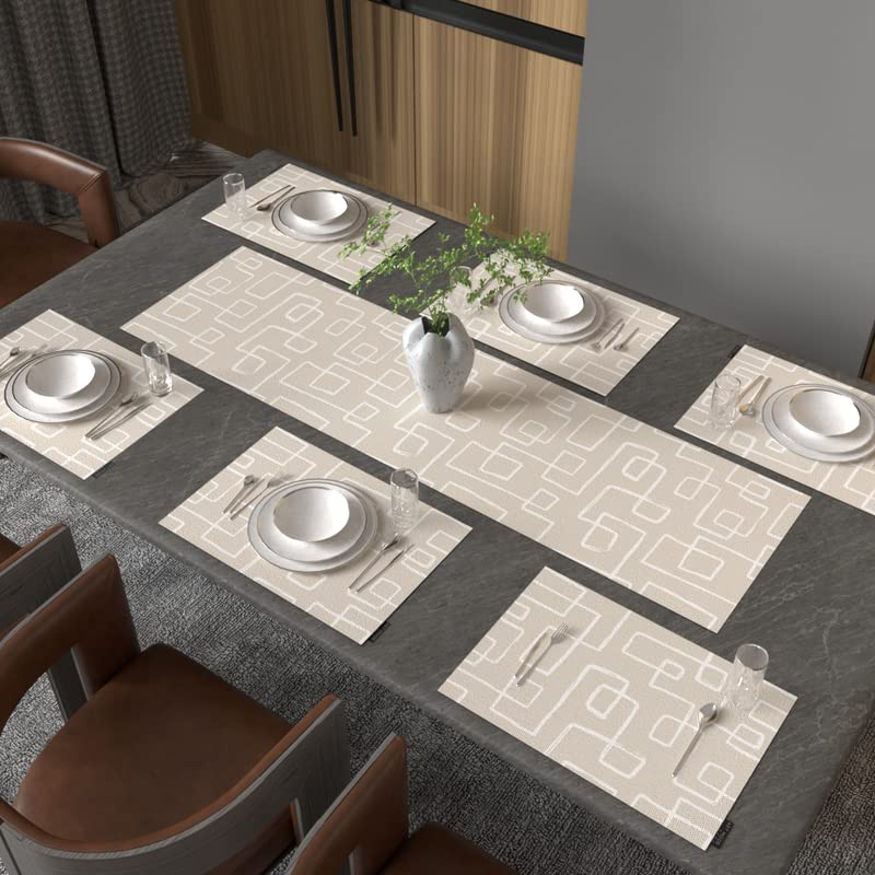 - 6 قطع من مفارش الأطباق ومفرش الطاولة، متوفرة بمجموعة واسعة من الألوان يمكنك بسهولة العثور على خيار ونمط يتناسقان مع غرفة طعامك