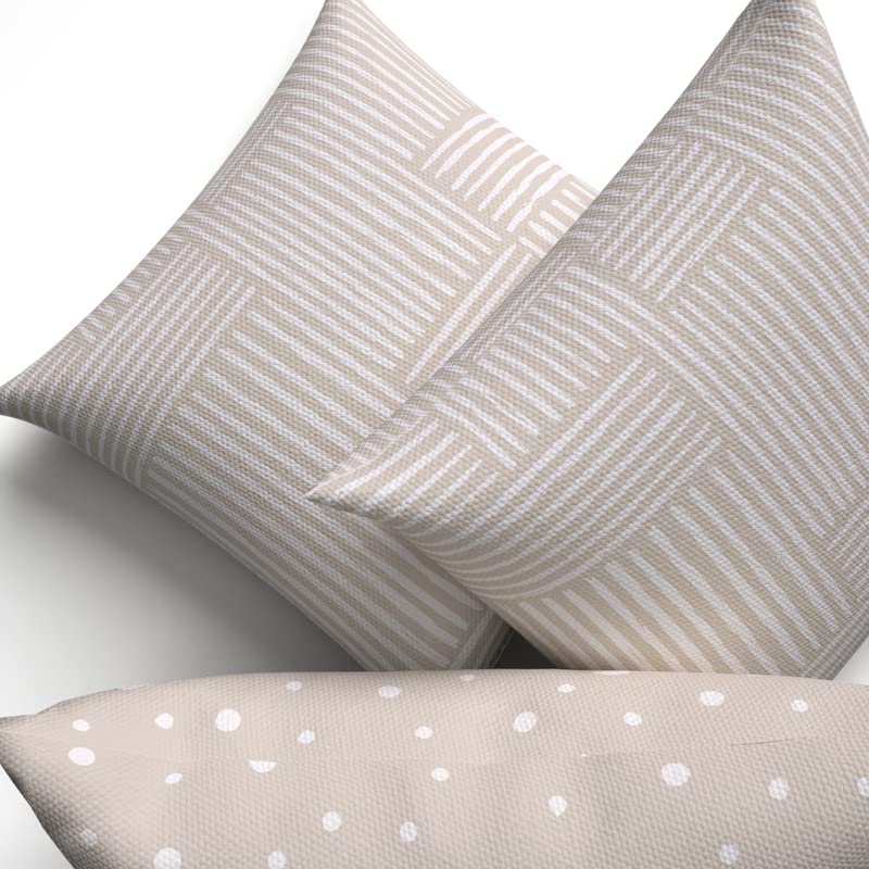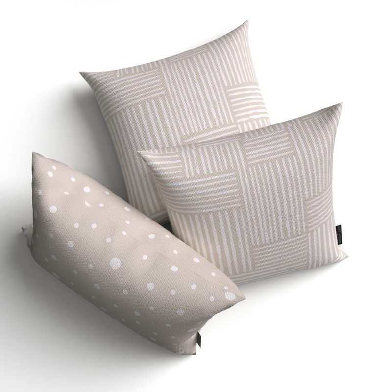 ART MOOD HOME - طقم وسادة من القماش من ارت مود هوم، لون بيج × أبيض، 40 سم عرض × 40 سم طول