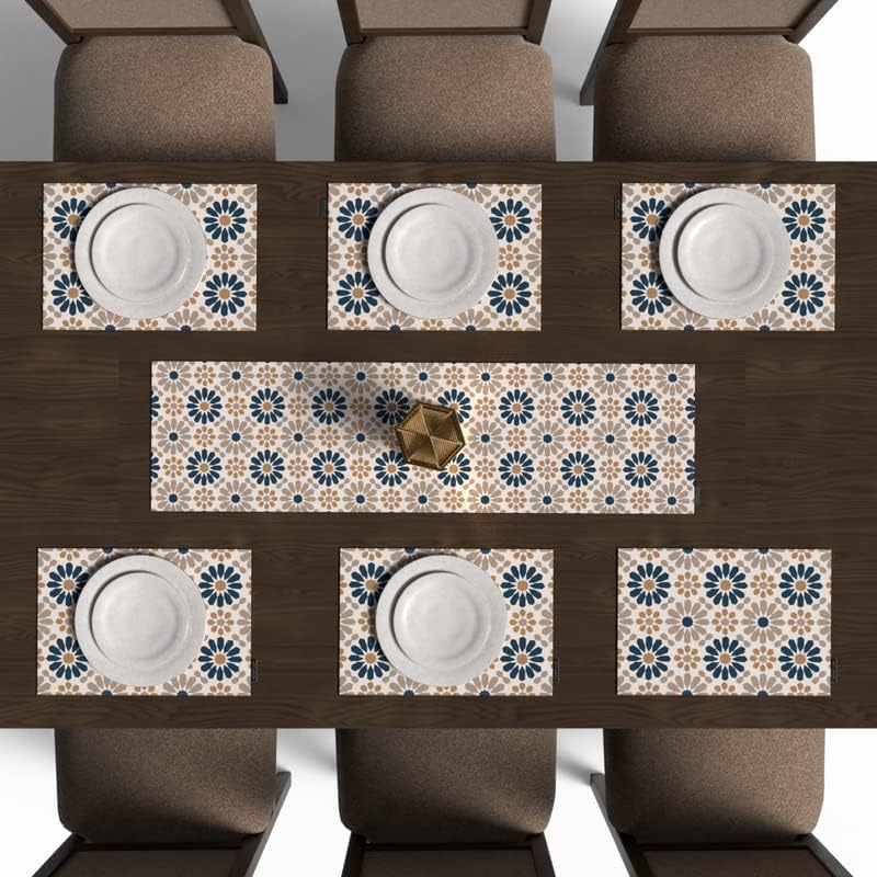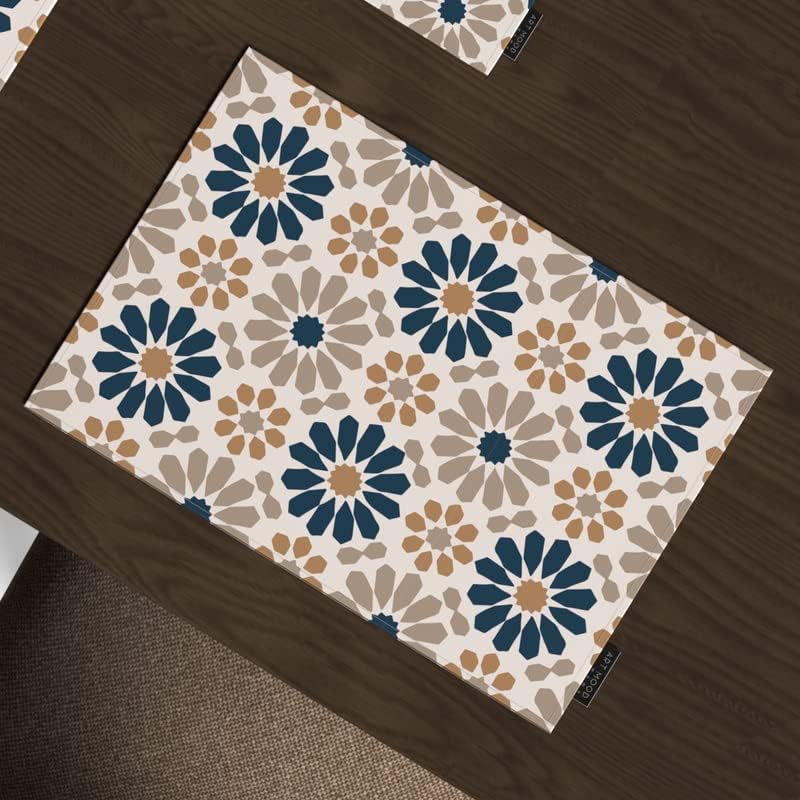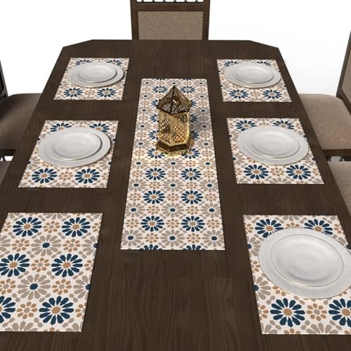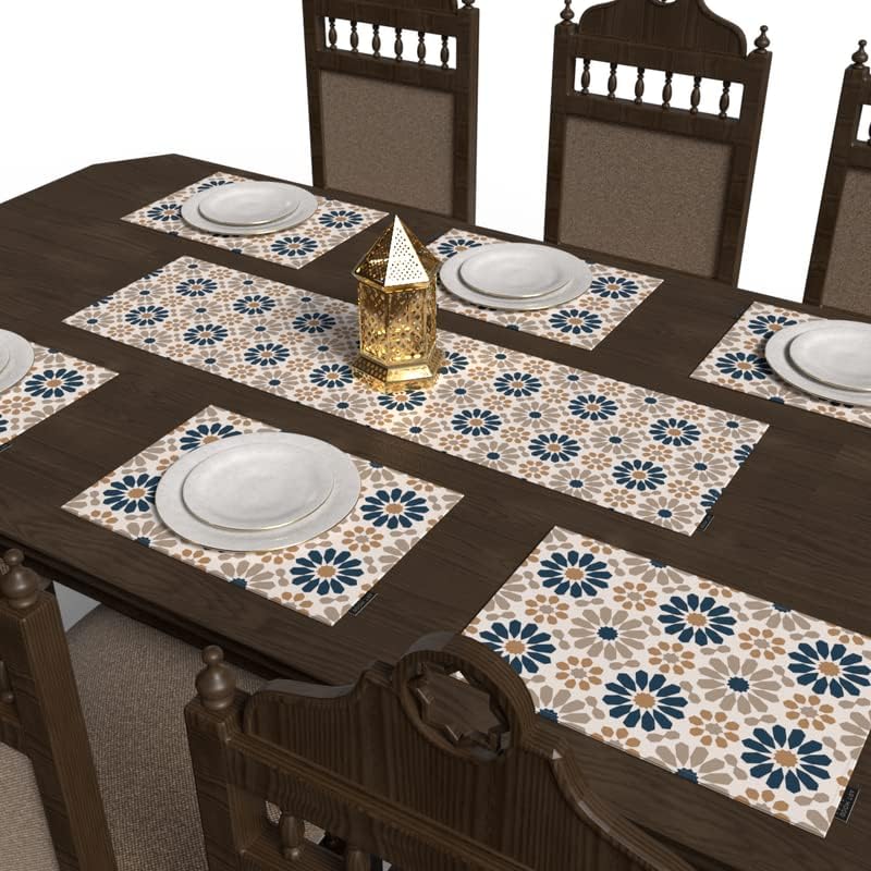 ART MOOD HOME - طقم مفارش أطباق بنقوش إسلامية يتكون من 6 قطع ومفرش طاولة من القماش متوفر بمجموعة واسعة من الألوان مقاس 45 × 30 و35 × 140 من ارت مود هوم