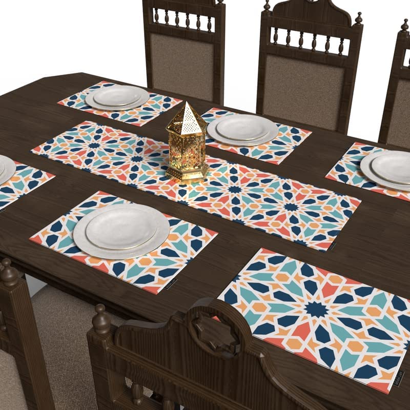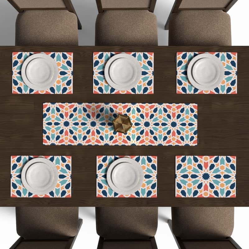 - مجموعة المفارش والمفارش بتصميمات أنيقة وملونة جذابة مثالية لتزيين طاولتك وحمايتها للاستخدام اليومي.