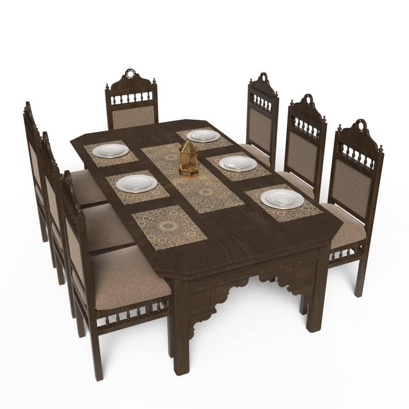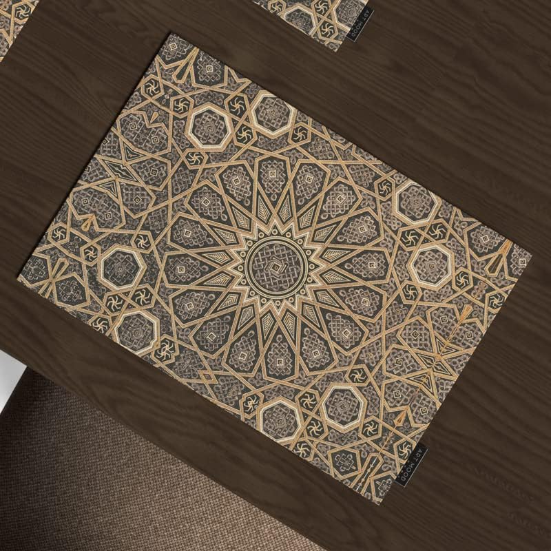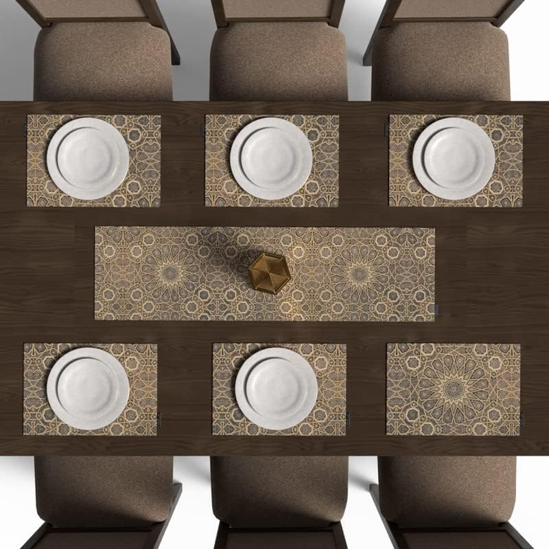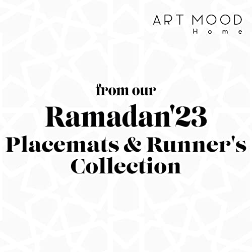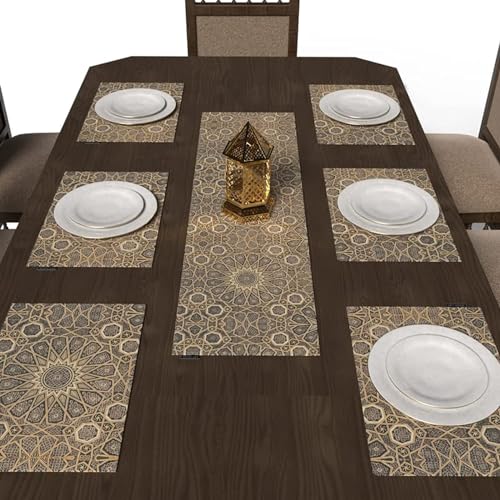 ART MOOD HOME - طقم مفارش اطباق بنقوش ديوانية اسلامية من 6 قطع ومفرش طاولة من القماش متوفر بمجموعة واسعة من الالوان مقاس 45 × 30 و35 × 140 من ارت مود هوم