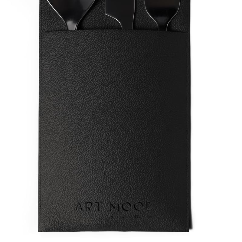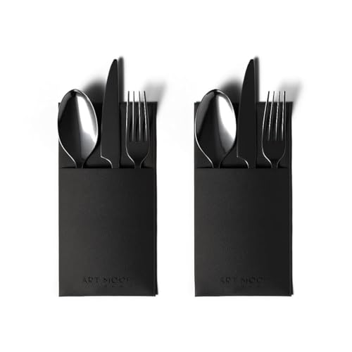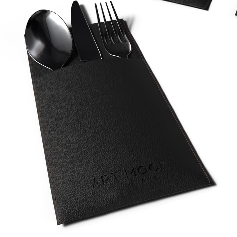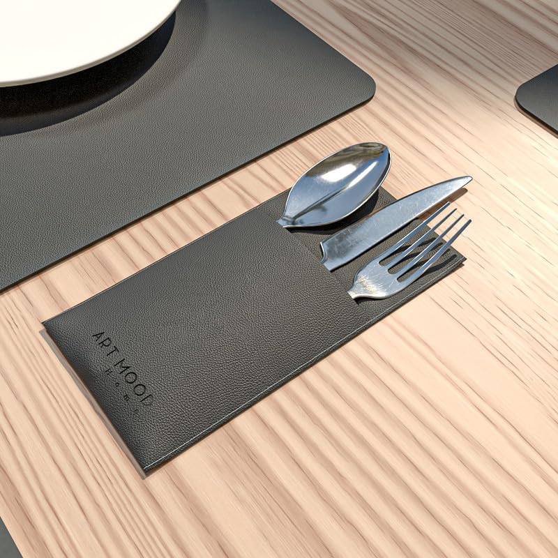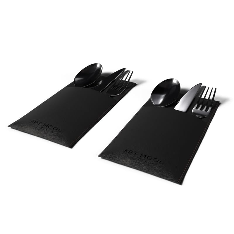ART MOOD HOME - حامل وغطاء جلدي، مجموعة حوامل أدوات تناول الطعام متينة لأطباق العشاء وطاولة الطعام من ارت مود هوم، 2 قطع، عرض 10 سم × طول 17 سم، أسود