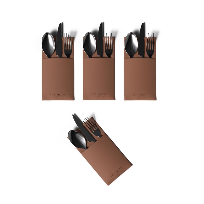ART MOOD HOME - حامل أدوات مائدة جلد بتصميم متين لأطباق العشاء وطاولة الطعام بعرض 10 × طول 17 سم من 4 قطع من ارت مود هوم، هافان