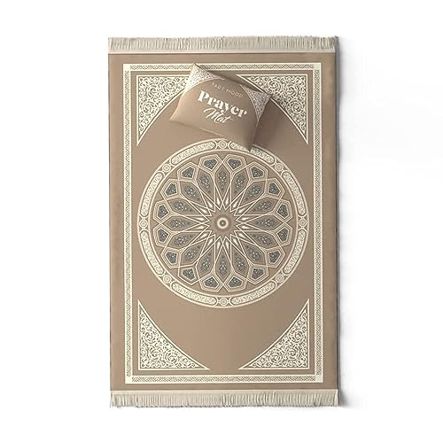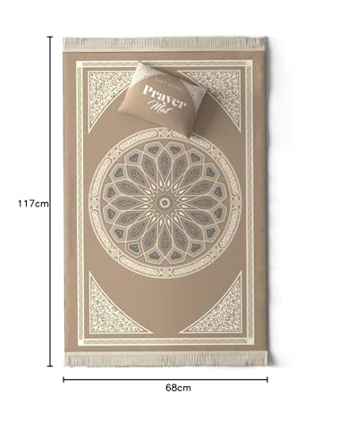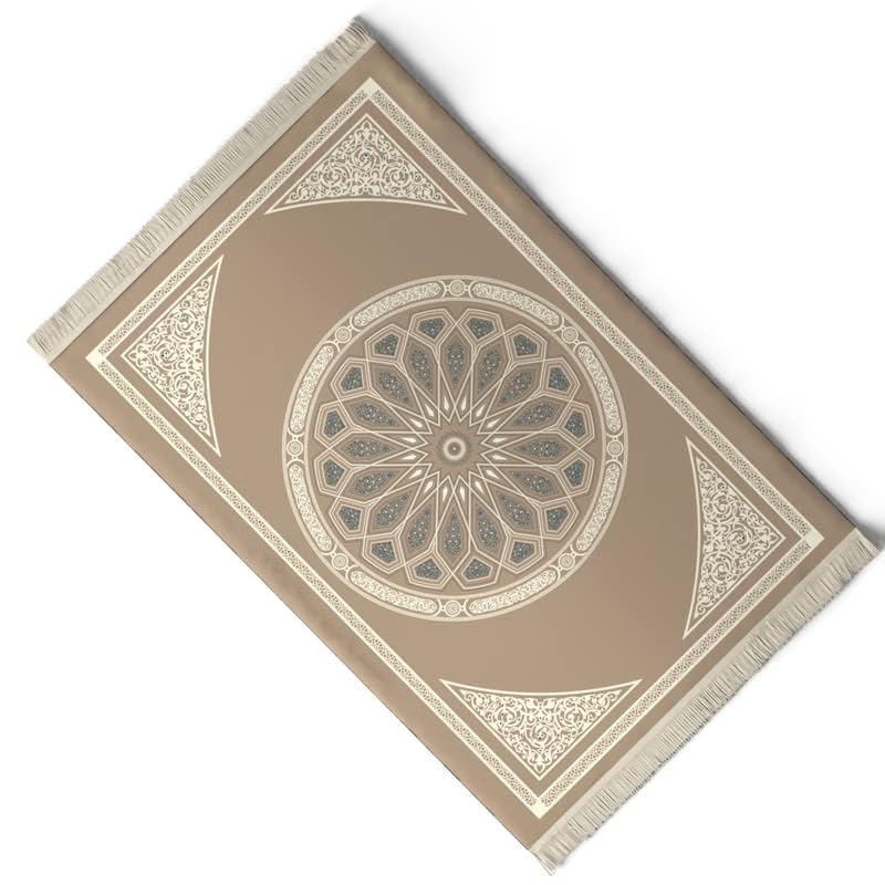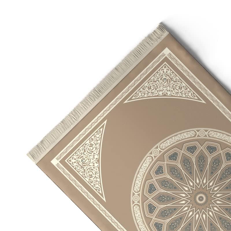 - سجادة صلاة الروضة من ارت مود مصنوعة من خامة قطيفة باللون البيج عرض مقاس 68 سم × 1.17 متر طول.