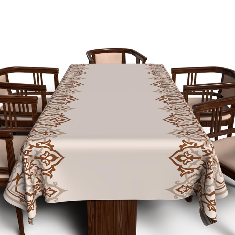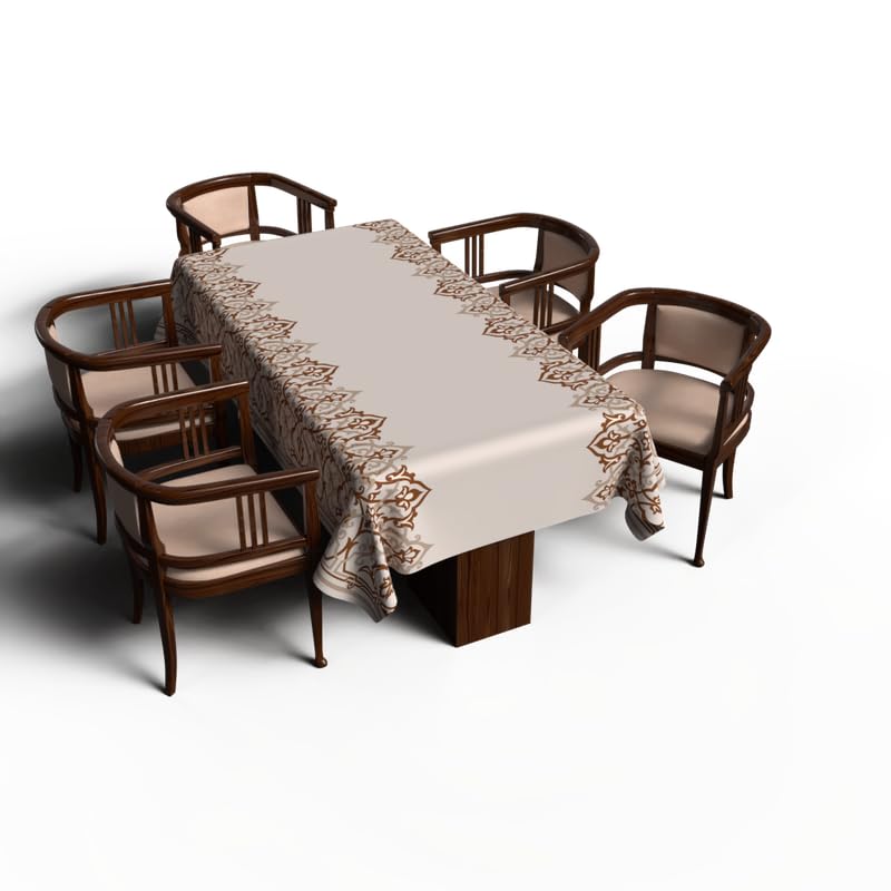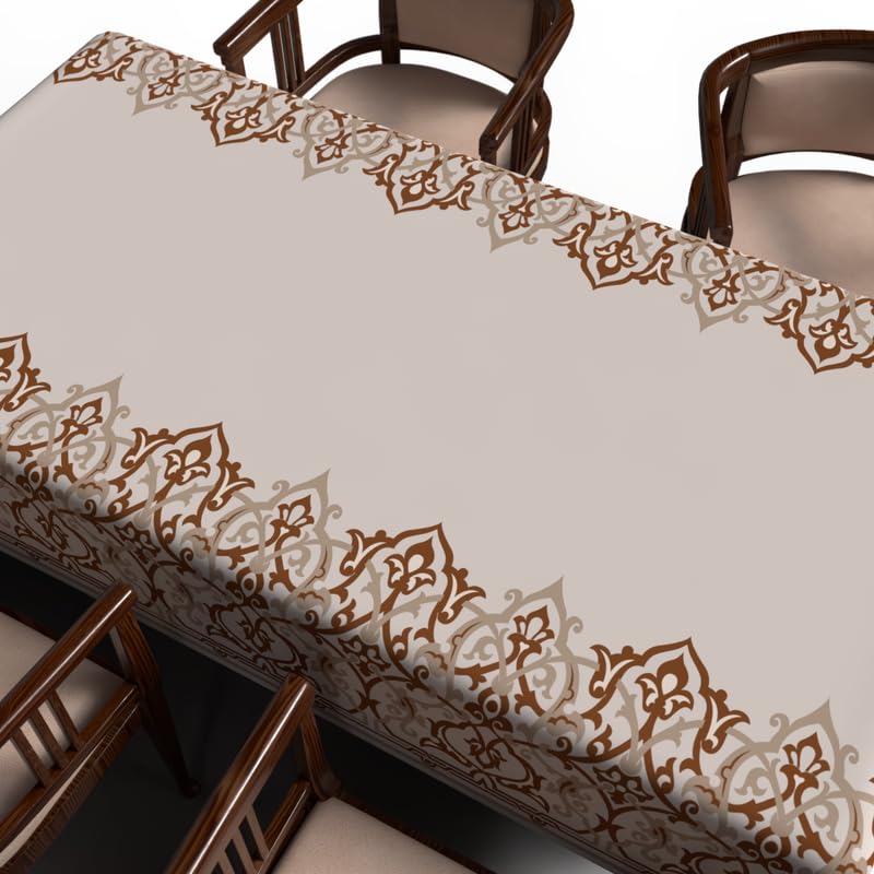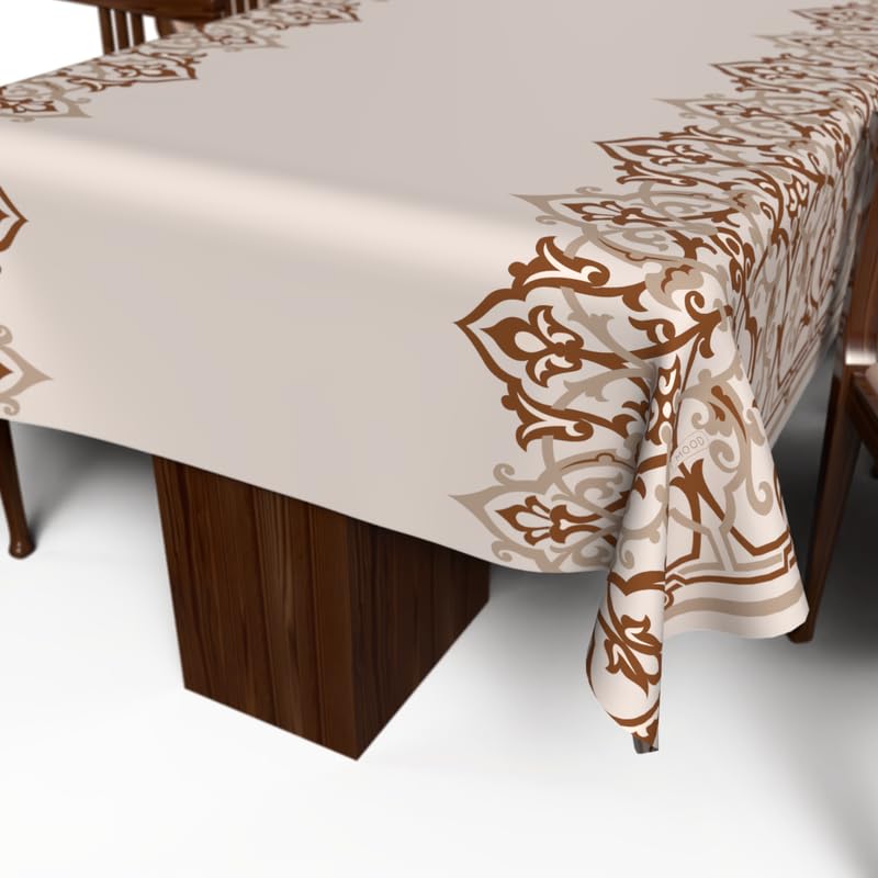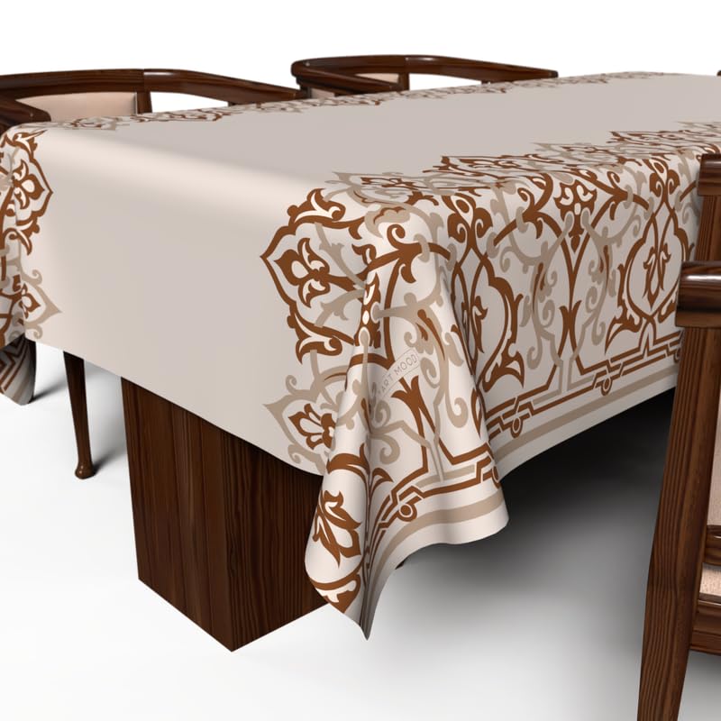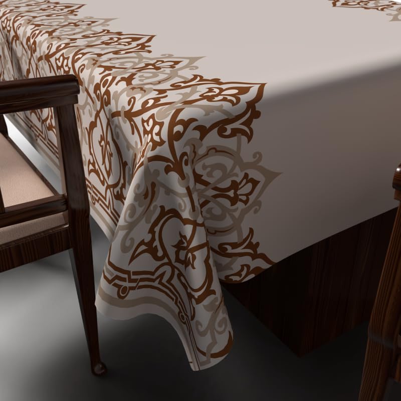 ART MOOD HOME - مفرش طاولة بتصميم أطلس رمضان من ارت مود هوم، قماش بوليستر مقاوم للماء، بيج وأبيض، عرض 1.40 × طول 1.40 متر، 140W * 140L