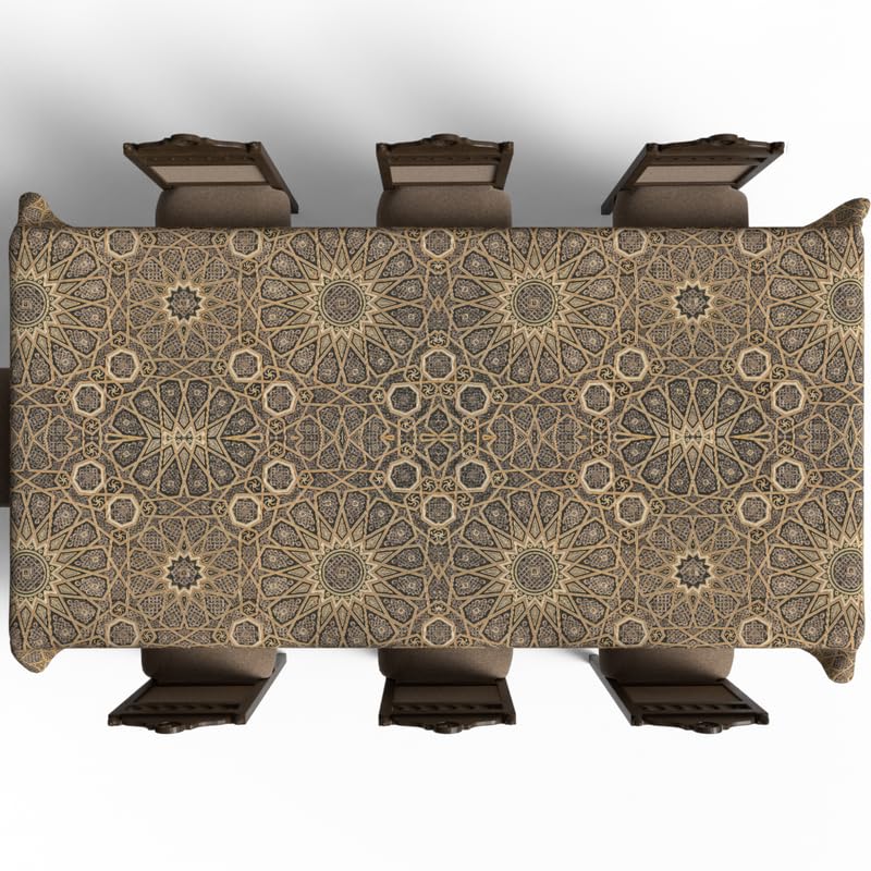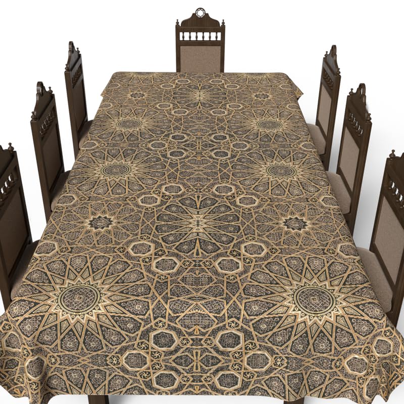 ART MOOD HOME - مفرش طاولة ديوان فريد من نوعه ارت مود هوم قماش بوليستر مقاوم للماء بني 8 ذهبي 140 عرض × 300 طول 140W * 300L
