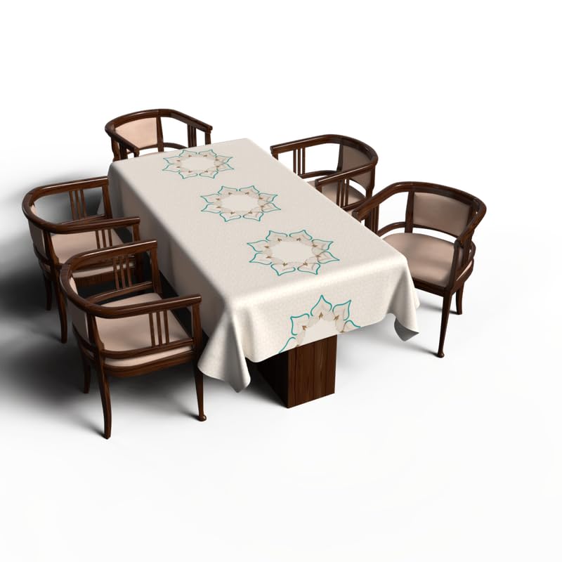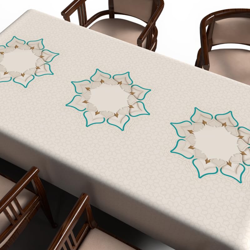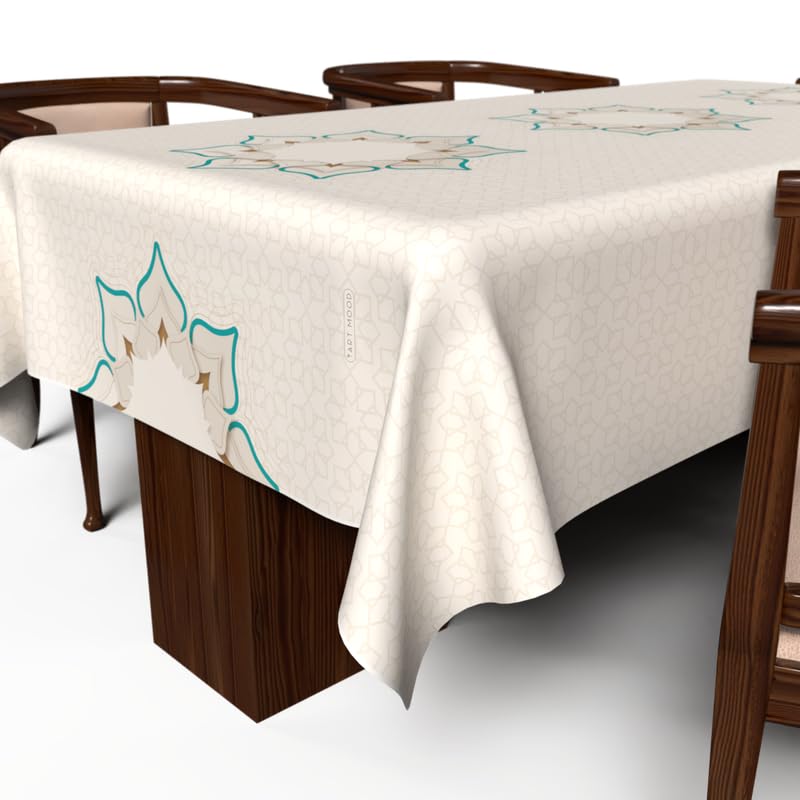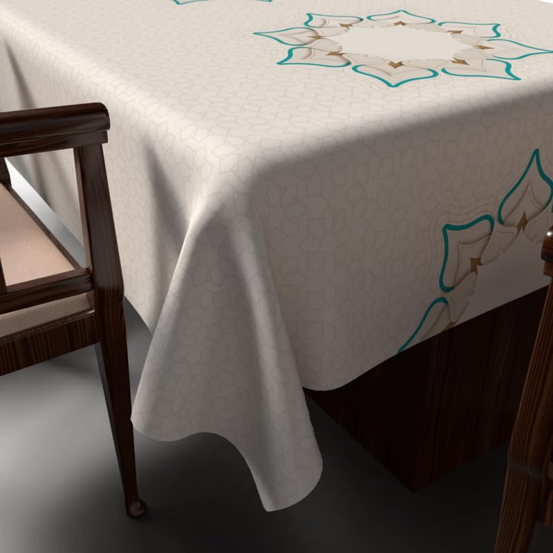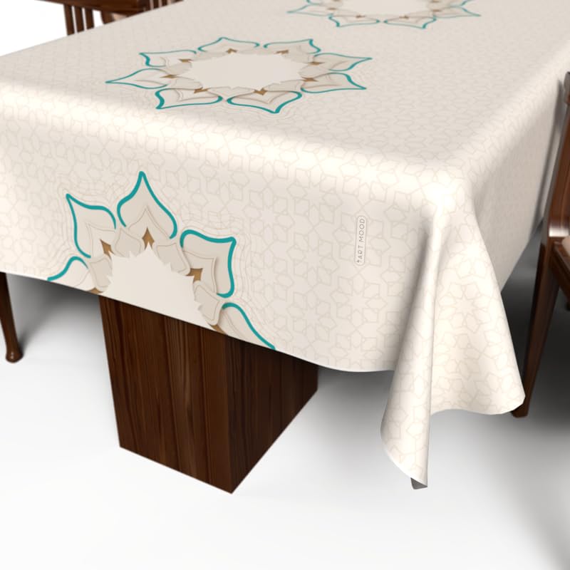 ART MOOD HOME - مفرش طاولة دورا بتصميم فريد من نوعه لشهر رمضان قماش بوليستر مقاوم للماء بيج وأبيض عرض 1.4× طول 1.4 ارت مود هوم 140W * 140L
