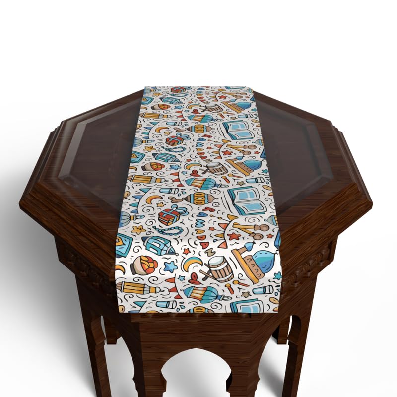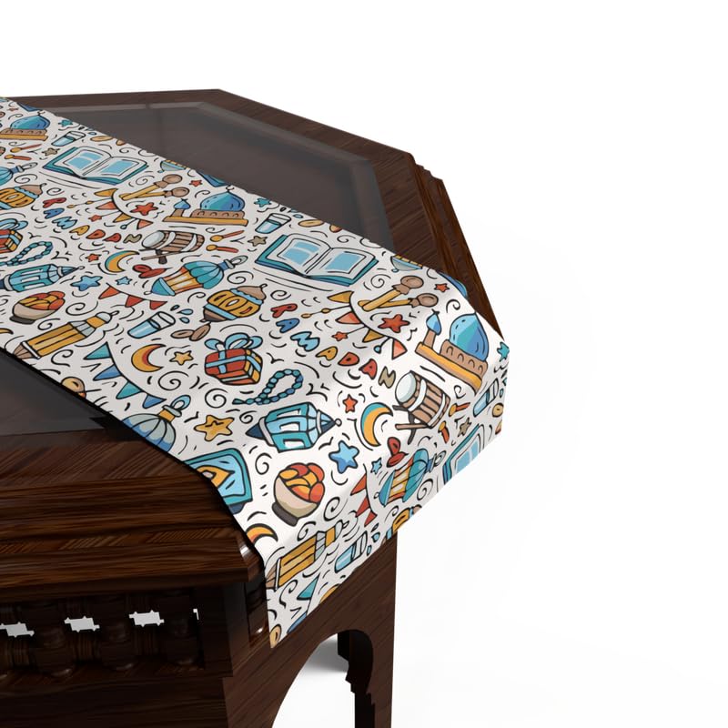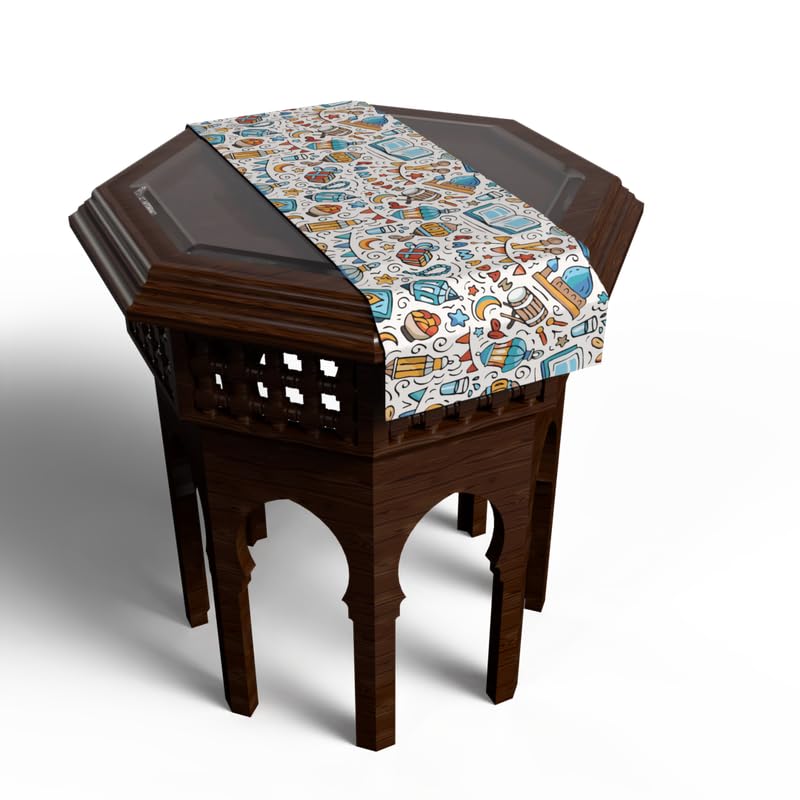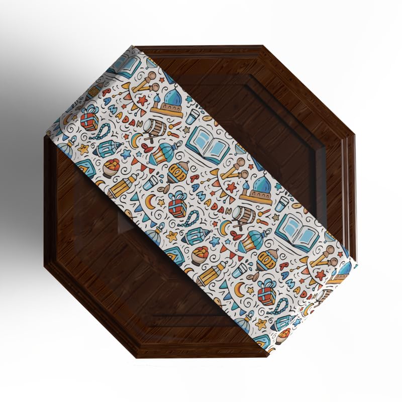 ART MOOD HOME - مفرش طاولة قطيفة بنقوش رمضانية فريدة من ارت مود هوم، رانر متعدد الألوان، 35 عرض × 140 طول