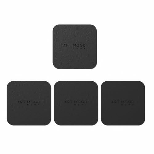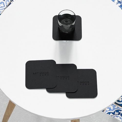 ART MOOD HOME - مجموعة قواعد أكواب من جلد صناعي بتصميم مربع من ارت مود هوم، قواعد أكواب من الجلد الصناعي بلمسة أنيقة ومقاومة للحرارة والخدش مثالية لطاولات القهوة وتناول الطعام وديكور المنزل، أسود، مجموعة من 4 قطع