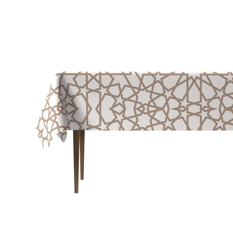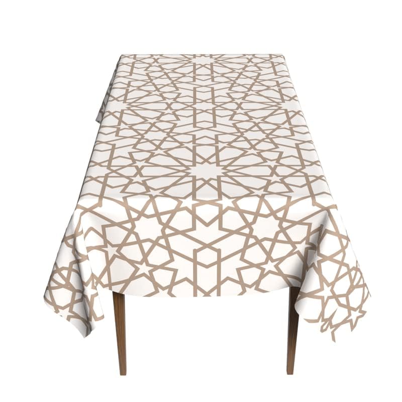 ART MOOD HOME - مفرش طاولة نوفا من قماش البوليستر المقاوم للماء ارت مود هوم بيج × ابيض 140 300 سم 140L x 300W