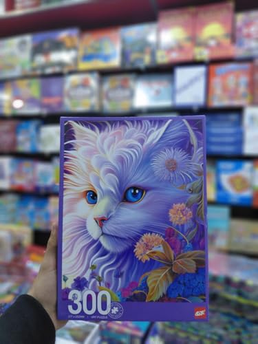 Generic - أحجية فنية بنمط قطة بيضاء مع عيون زرقاء وزهور، 37.7× 25.2 سم، 300 قطعة