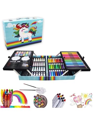 Generic - طقم فني للرسم والتلوين للأطفال، حقيبة معدنية مع تصميم يونيكورن قوس قزح،