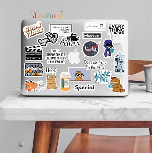 - ستيكر قابل للتعديل لإضفاء الطابع الشخصي: عبّر عن أسلوبك الفريد من خلال تزيين اللابتوب أو حافظة الموبايل أو زجاجة المياه أو أي سطح أملس بهذه الملصقات العصرية.