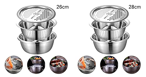 ARTC - مصفاة 3 في 1 متعدد الاستخدامات من الفولاذ المقاوم للصدأ مع مبشرة من ارتك، مصفاة صلبة ولوح لتقطيع وغسل الخضروات والفواكه بسهولة وراحة (26 سم)