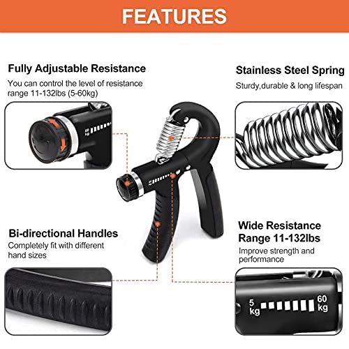 arteesol - معدات تقوية قبضة اليد لتمرين الأصابع من ارتيسول، أسود - عبوة من 5 قطع