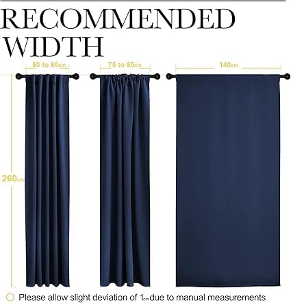 ArtTEX - ستارة تعتيم معزولة حراريا من ارت تكس لغرفة المعيشة والنوم (لوح واحد) (لون كحلي، 132 سم عرض × 160 طول)، البوليستر، سادة، ارت تكس، 132W x 160H