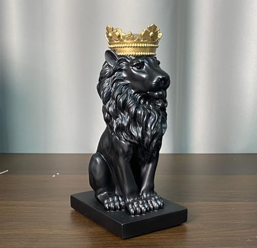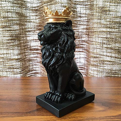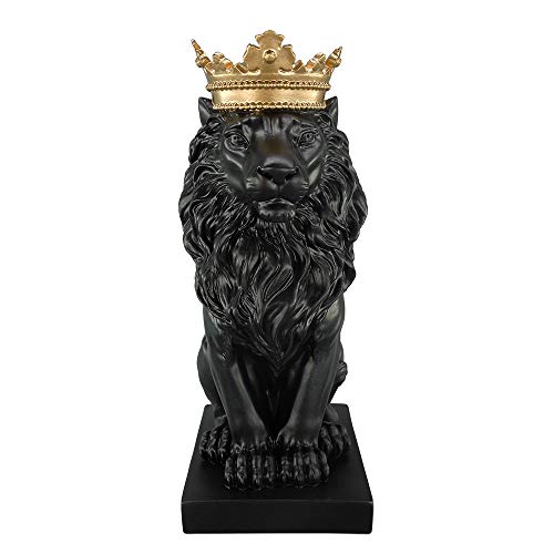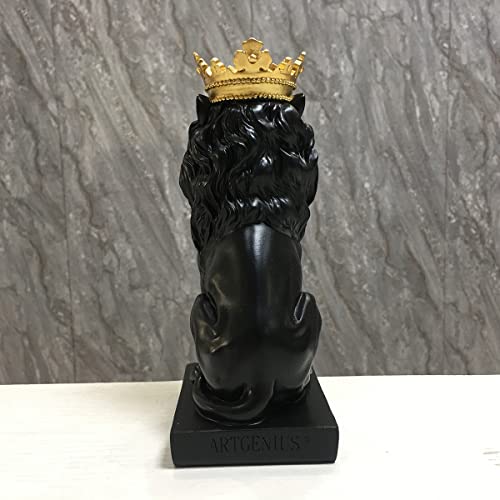 Artgenius - تمثال أسد ملكي مع تاج الملك 18.54 سم (أسود)