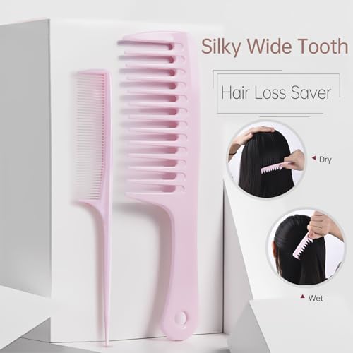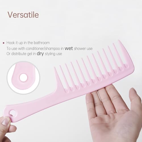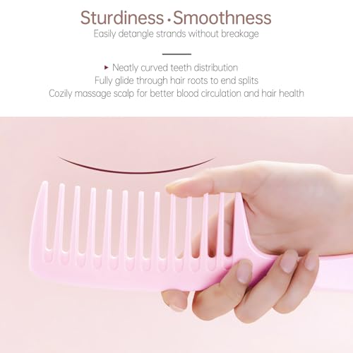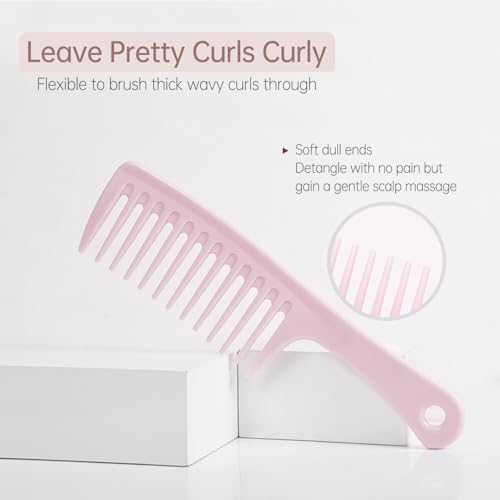 Arthaxi - مشط باسنان عريضة للنساء لتجعيد الشعر، مشط شعر كبير زهري للاستخدام الرطب في الاستحمام او الاستخدام الجاف بحجم مناسب للسفر، فرشاة خالية من الاضرار لجميع انواع الشعر، زهري، عبوة واحدة