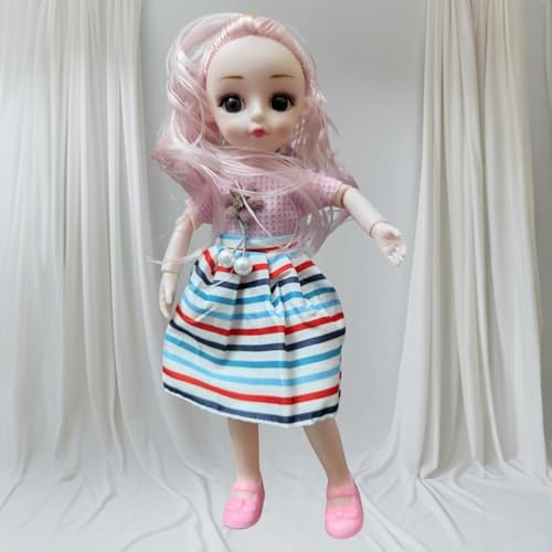 Generic - عروسة لعبة مفصلات، شعر لامع، فستان رائع قابل للتغيير مع باقي العرائس، 23 سم، مع عيون جذابة وخدود وردية، في علبة أنيقة مناسبة للهدايا (وردي مخطط.)