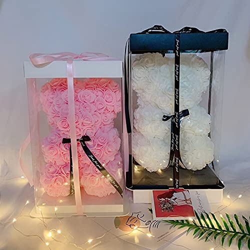 Bitshops - زهرة كرتونية صناعية ومجففة مقاس 25 سم بتصميم دب وردي احمر من البولي ايثيلين الاصطناعي هدايا عيد الحب للاطفال لتزيين المنزل والكريسماس (اللون: احمر غامق، المقاس: مع صندوق)