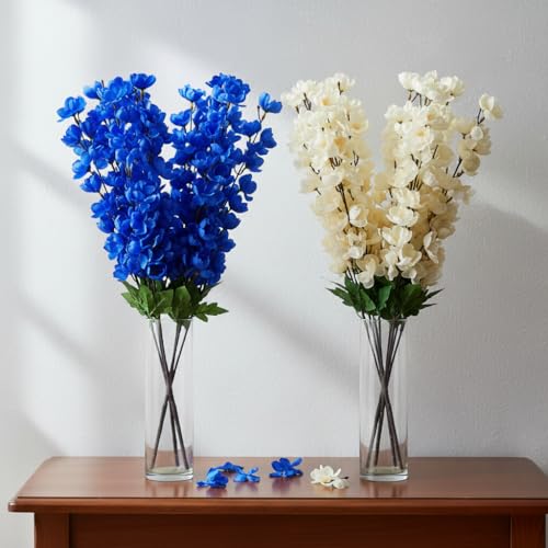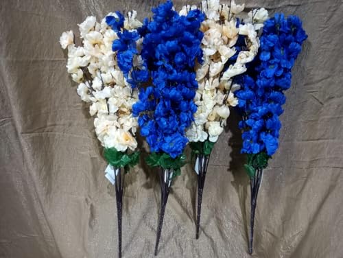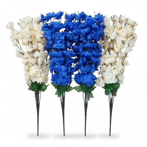 Generic - باقة زهور المشمش الصناعي بألوان طبيعيه الأزرق و أوف وايت 4 مجموعه
