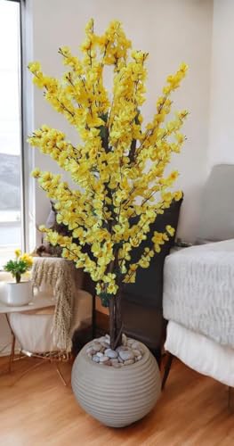 Generic - شجره المشمش الاصطناعية صفراء، ارتفاع ١٥٠ سم، مع بوت بيج أكليرك وحصى ديكور