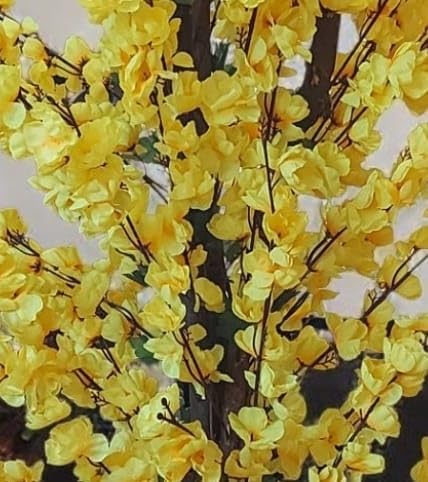 - التصميم: زهور فورسيثيا صفراء اصطناعية جميلة مع أغصان متعددة تخلق مظهراً طبيعياً مذهلاً