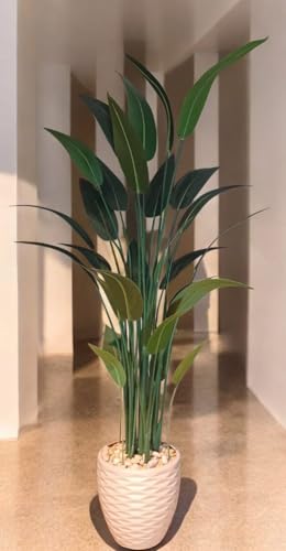 Generic - نبات الموز الصناعي، ارتفاع ١٨٠ سم، ٢٨ ورقة، مع وعاء أبيض أكريليك، للديكور المنزلي والمكتبي