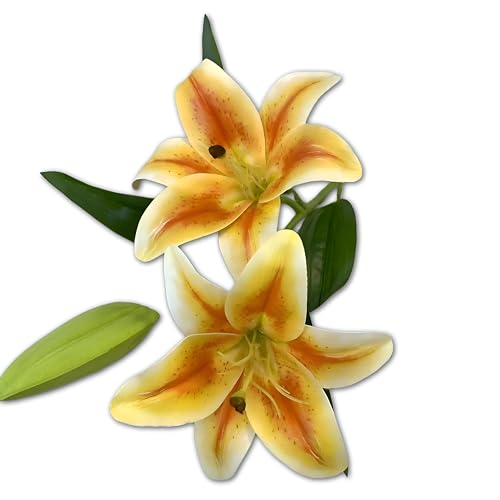 Generic - زهور صناعية - باقة زنبق النمر بلمسة حقيقية مع رأسين متفتحين كاملين، مثالية للديكور الأنيق للمنزل أو المكتب وعروض الحديقة وحفلات الزفاف واللمسات الداخلية الأنيقة (الخيار 1، قطعة واحدة)
