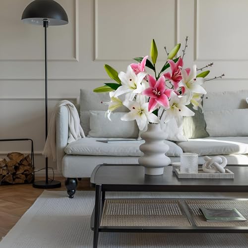 - مناسبة للاستخدامات المتعددة، تضيف هذه الزنابق الصناعية الرومانسية والانتعاش إلى غرف المعيشة وغرف النوم والمطابخ وطاولات العشاء والمساحات المكتبية. كما أنها مثالية لحفلات الزفاف والحفلات وعيد الحب والكريسماس وأعياد الميلاد وحفلات استقبال المولود.