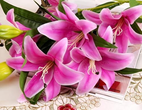 Generic - زهور صناعية - باقة زنبق النمر بلمسة حقيقية مع رأسين متفتحين كاملين، مثالية للديكور الأنيق للمنزل أو المكتب وعروض الحديقة وحفلات الزفاف واللمسات الداخلية الأنيقة (الخيار 4، 5 قطع)