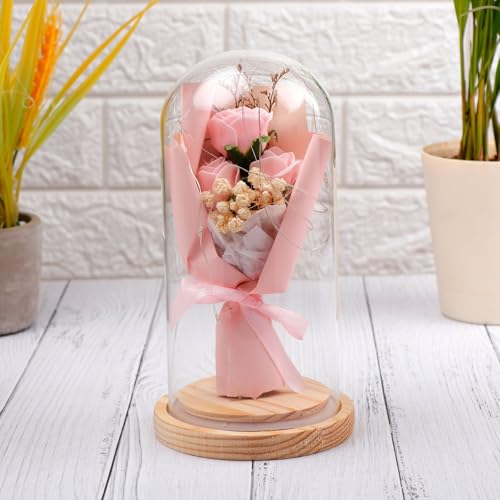 Generic - زهور صناعية، باقة ورود في قبة زجاجية مع أضواء ليد، باقة من الزهور الصناعية في قبة زجاجية