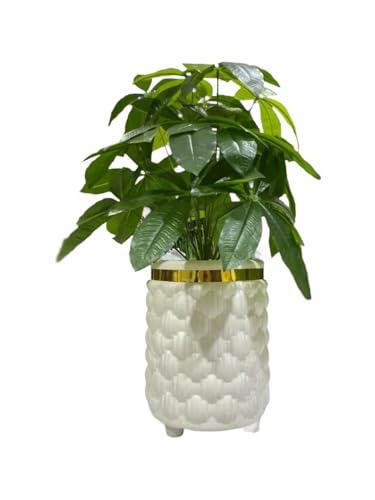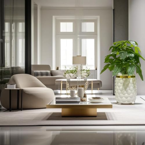 Generic - نبات زينة صناعي أخضر بأوراق كثيفة في فازة أنيقة بحافة ذهبية