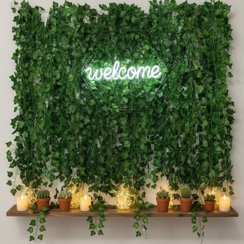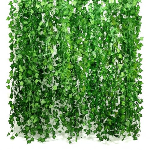 Generic - أوراق لبلاب صناعي معلّق 25.2 متر (12 قطعة) – فروع خضراء للديكور – إكليل نباتات زينة للجدران والبلكونة وغرف النوم – للحفلات والزفاف والكريسماس – سهل التعليق
