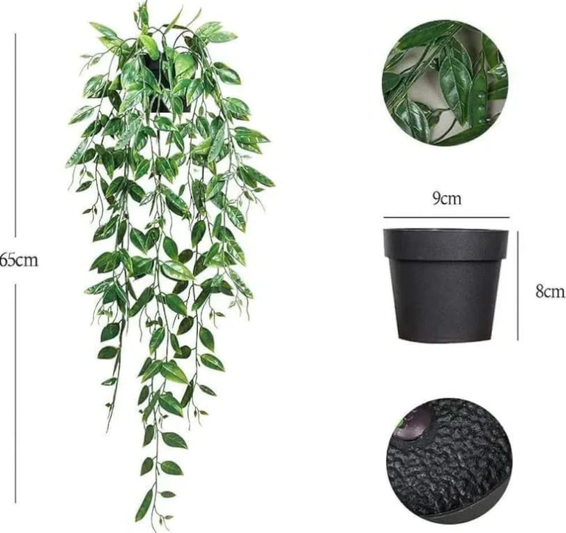 Generic - نبات كرمة صناعي معلق مع وعاء اسود، اوراق شلال خضراء، طول 65-70 سم