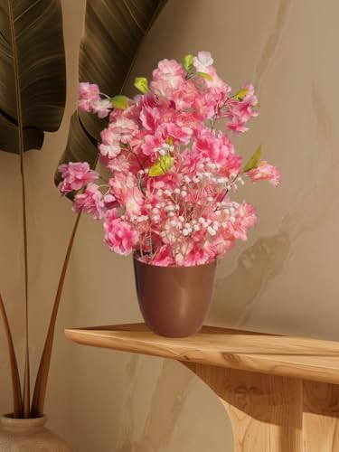 Generic - باقة زهور ياسمين صناعية، زهور وردية جميلة، مع مزهرية ذهبية، للديكور المنزلي